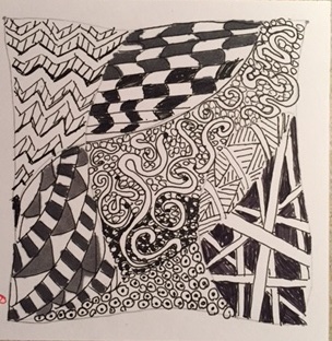 The OSP process challenges us to develop a daily practice of art-making, even if it is a quick sketch on an index card. I was particularly crabby one day with my kids snarking at me, (hadn’t developed a daily art practice—nor have I yet, really) feeling a bit like a punching bag. I took a few moments to “draw it all out,” literally. I got out the pastels and an index card, (because I felt dubious and ambivalent,) threw it down and began to strike at the card. The dark scribbling, so fitting for my mood at the time, emerged as the chomping little shredder I had met a few years back in my IFS session. As I witnessed, I had a chat with my little chomp-animal, and in the process felt endeared to him. He took on that Muppets-Animal appearance, his once matted coat fluffing out to billow like red feathers. In our dialogue, I asked him to cool his jets a little, and let me be. He told me he was really there to help me avoid embarrassment and failure, but in the process, he rather sheepishly revealed his good intentions. The dialogue tamed his fiery rage and as I scooted a little closer, his once erect-pinscher ears folded down, allowing me to caress surprisingly soft, downy plumage. His teeth stopped chattering and spitting and a boyish, toothy grin emerged.